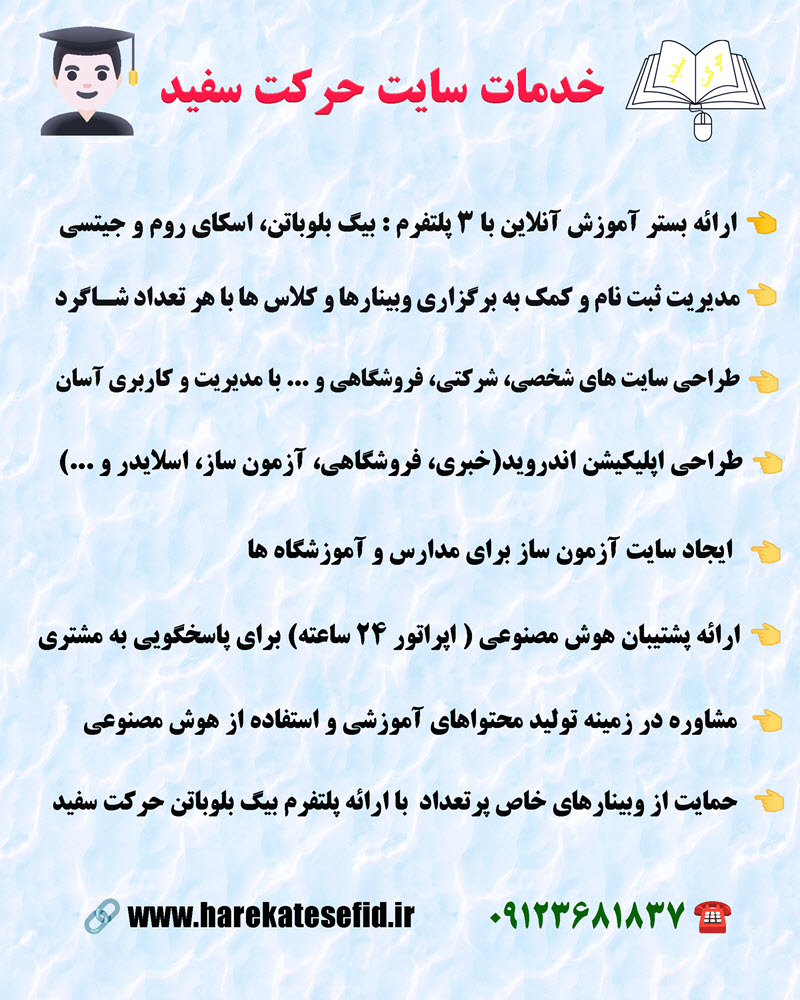 توجه: کاربران سایت حرکت سفید که بسته فعال دارند می توانند با پشتیبانی برای گرفتن یوزر و پسورد آزمون ساز تماس بگیرند.